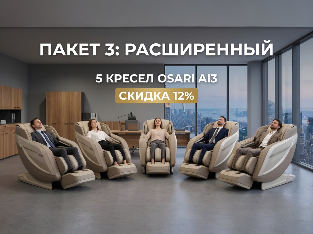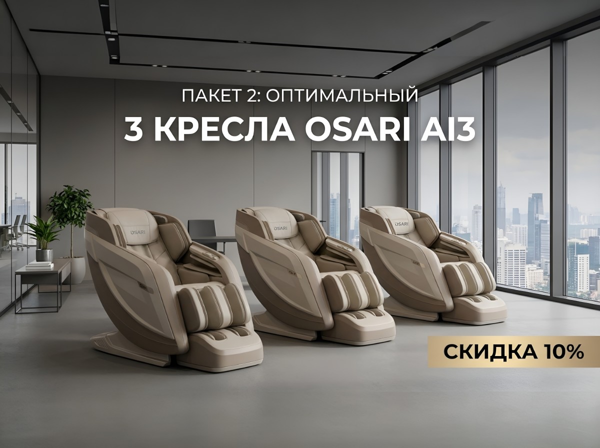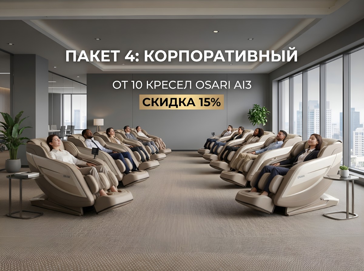 Комната отдыха — это не просто помещение, где можно посидеть или отвлечься. Это тщательно продуманное пространство оснащенное массажным оборудованием, которое снижает уровень стресса, улучшает микроциркуляцию, помогает расслабить мышцы шеи и спины и восстанавливает концентрацию. Даже короткая пауза в 5–10 минут в массажном кресле или кровати OSARI способна значительно повысить продуктивность на оставшуюся часть дня