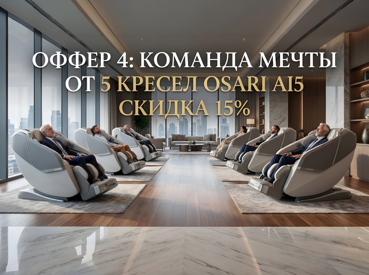 Оснащение комнат отдыха массажными креслами OSARI позволяет создать функциональную и одновременно премиальную зону восстановления, которая работает без участия персонала, не требует даже минимального обслуживания и даёт измеримый эффект уже в первые дни эксплуатации