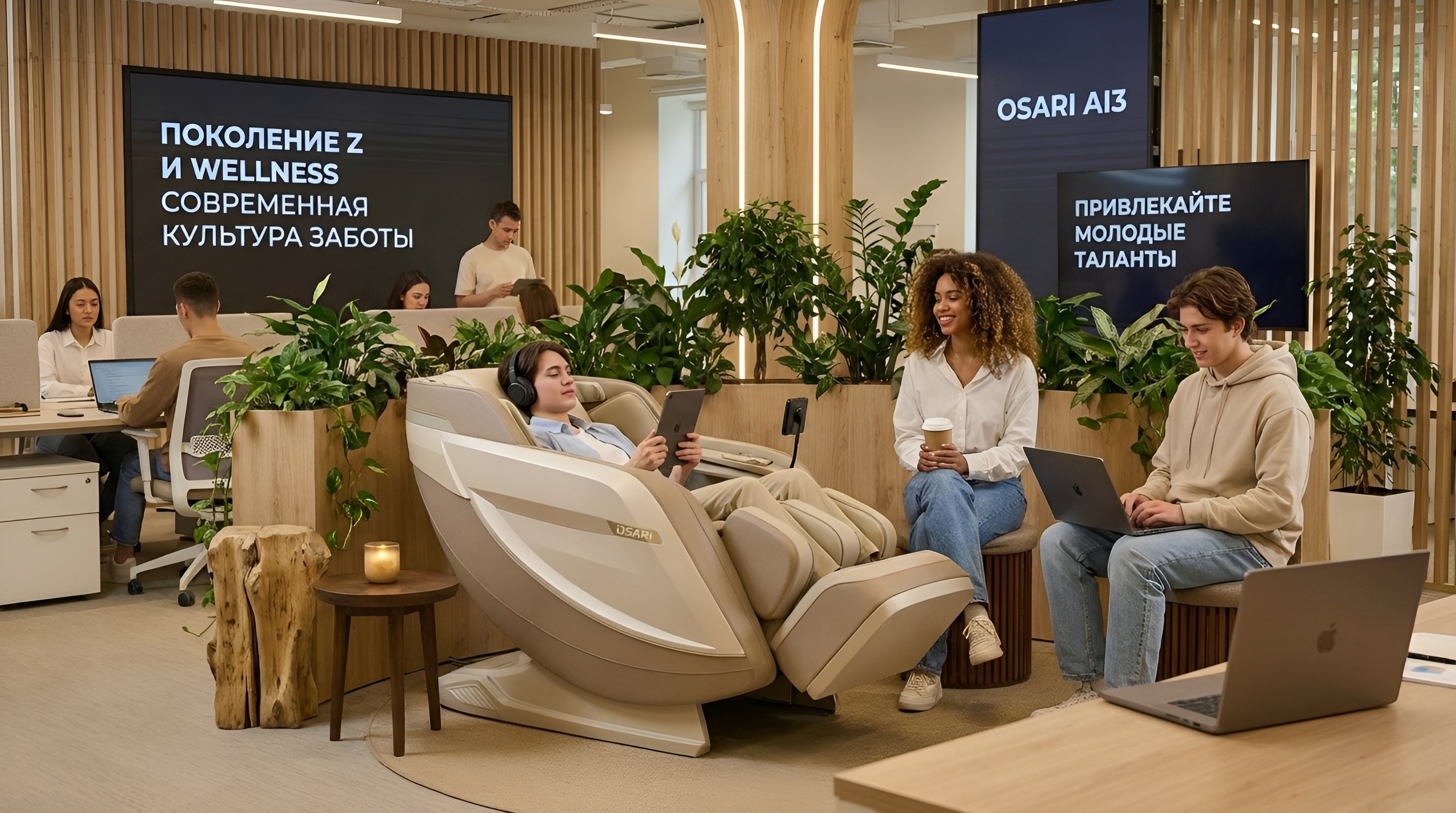 Оснащение комнат отдыха и зон релаксации массажными креслами OSARI — современный стандарт здорового и эффективного офиса. Современные компании понимают, что эффективность сотрудников напрямую связана с качеством их восстановления. Именно поэтому комнаты отдыха становятся неотъемлемой частью офисной инфраструктуры — от IT-компаний и банков до клиник, call-центров и корпоративных пространств