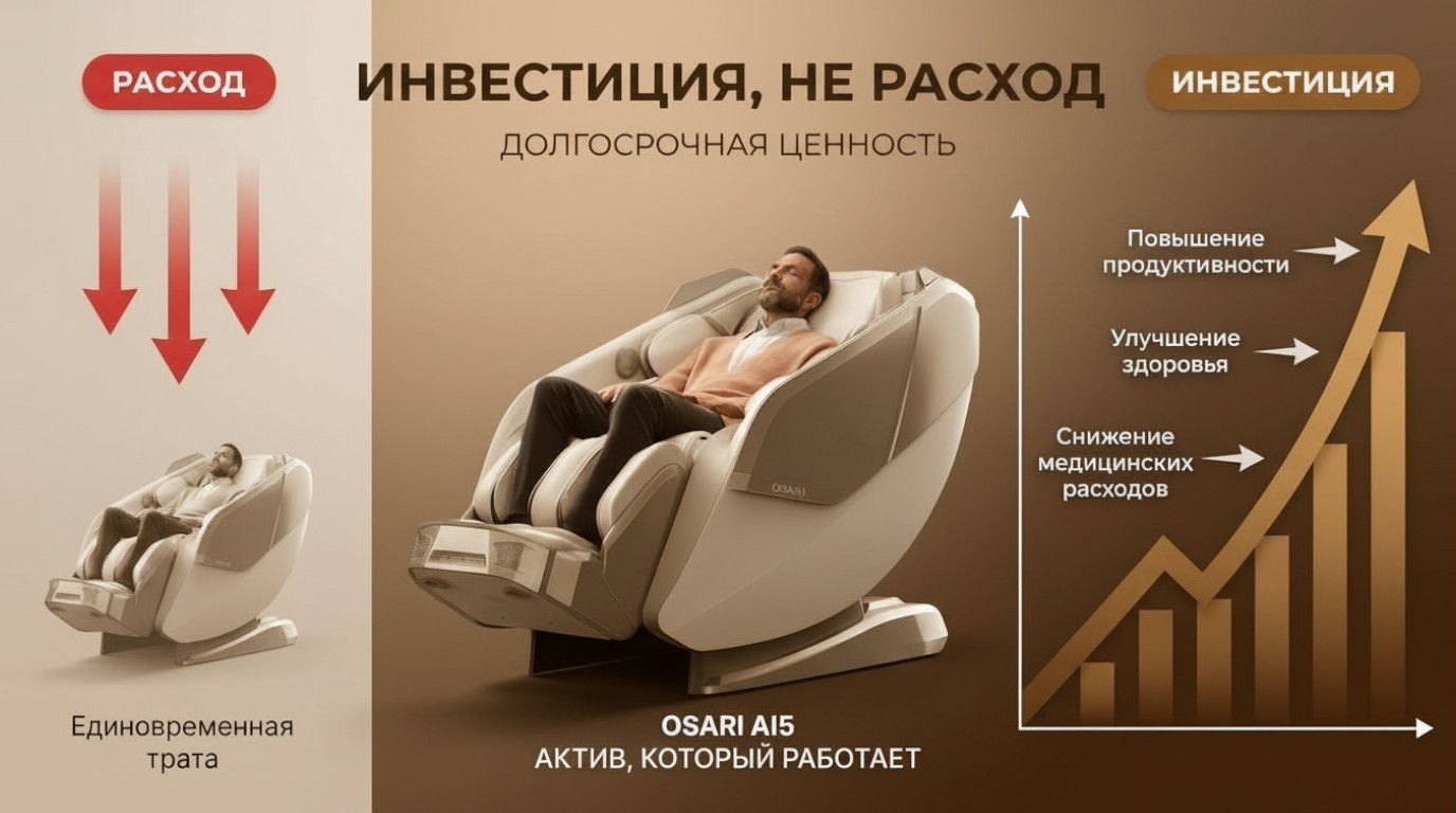 Умнейшее массажное кресло OSARI Ai5 - идеальное сочетание инновационных технологий 5D массажа, искусственного интеллекта и автоматизации, модель анализирует и адаптирует массаж в реальном времени