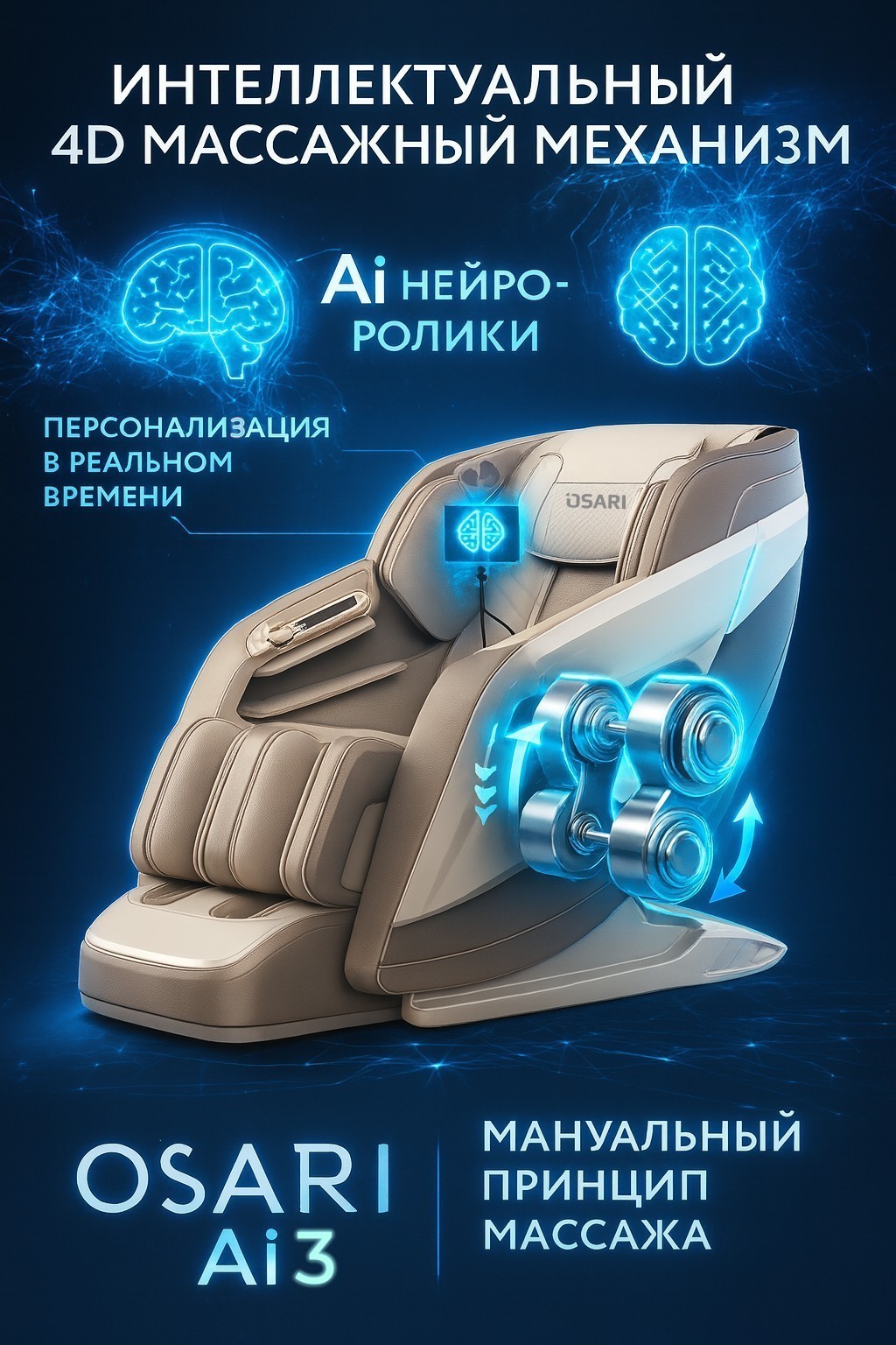 OSARI Ai3 — это не просто кресло для массажа, а современная многофункциональная система высокого уровня, объединяющая инновационные разработки в сферах робототехники, искусственного интеллекта и сенсорных технологий. Основной особенностью этого устройства являются интеллектуальные нейро-ролики, которые не только воспроизводят работу профессионального массажиста и специалиста по ручной терапии, а зачастую превосходят её возможности